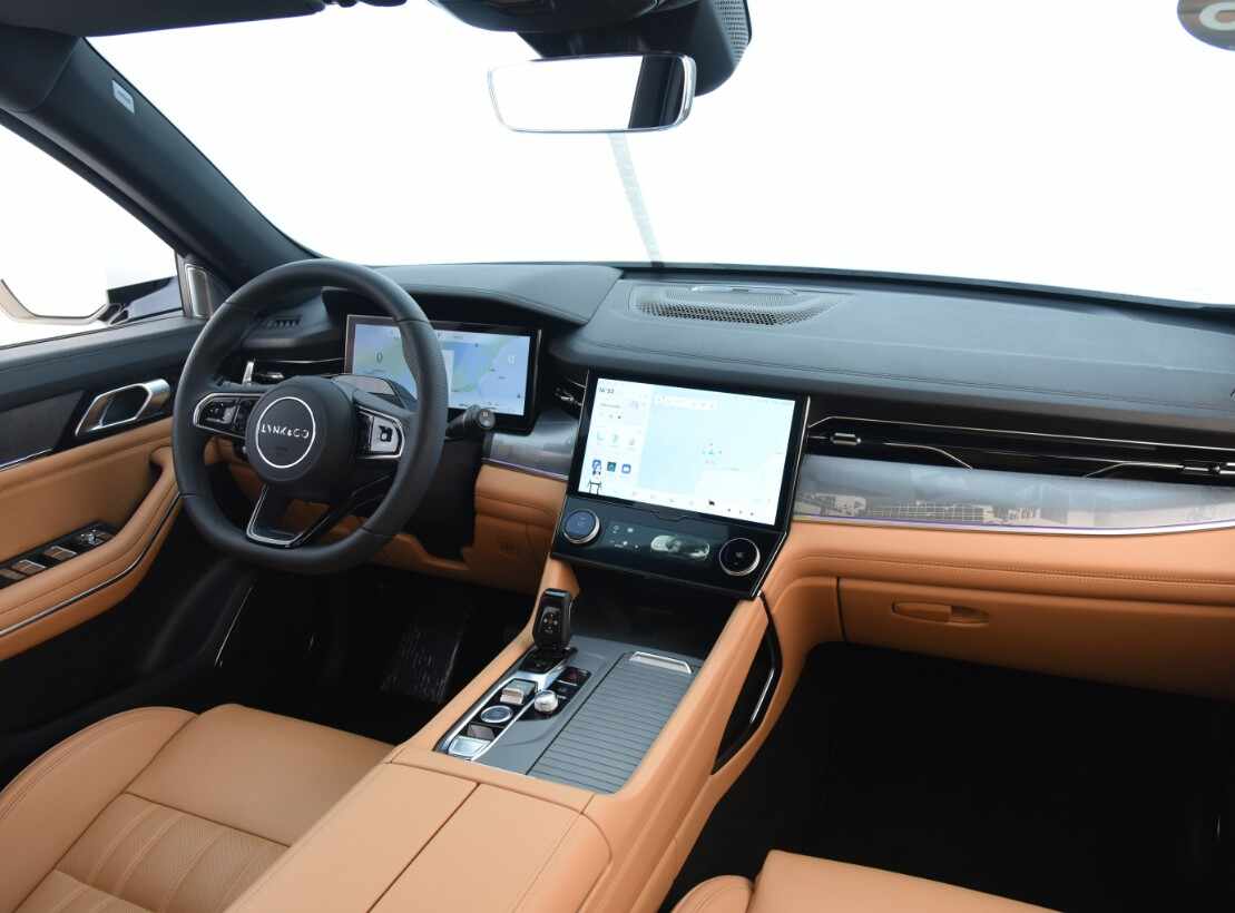 內(nèi)飾設(shè)計(jì)還是很用心的,細(xì)節(jié)運(yùn)用的也很巧妙,布局看上去很規(guī)整,操作起來也簡單易上手,中控設(shè)計(jì)感厚重,乘坐空間比較充裕,避震調(diào)的也很好,乘坐體驗(yàn)非常舒服。個(gè)性顏色方面,領(lǐng)克09新能源提供有黑、深海藍(lán)、松林綠、灰、紫這些外觀顏色,而與之相襯的內(nèi)飾顏色則有黑色+棕色、黑色+晨霧灰、棕這些。